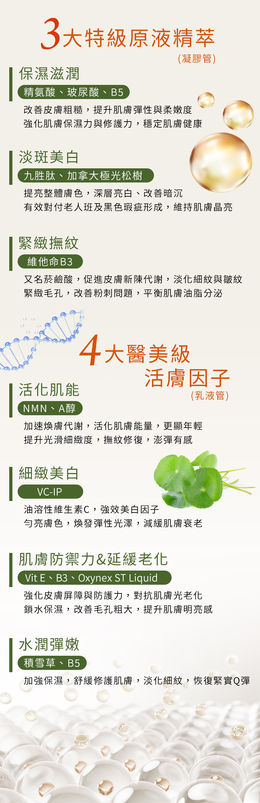 • 3大特級原液精萃+4大醫美級活膚因子