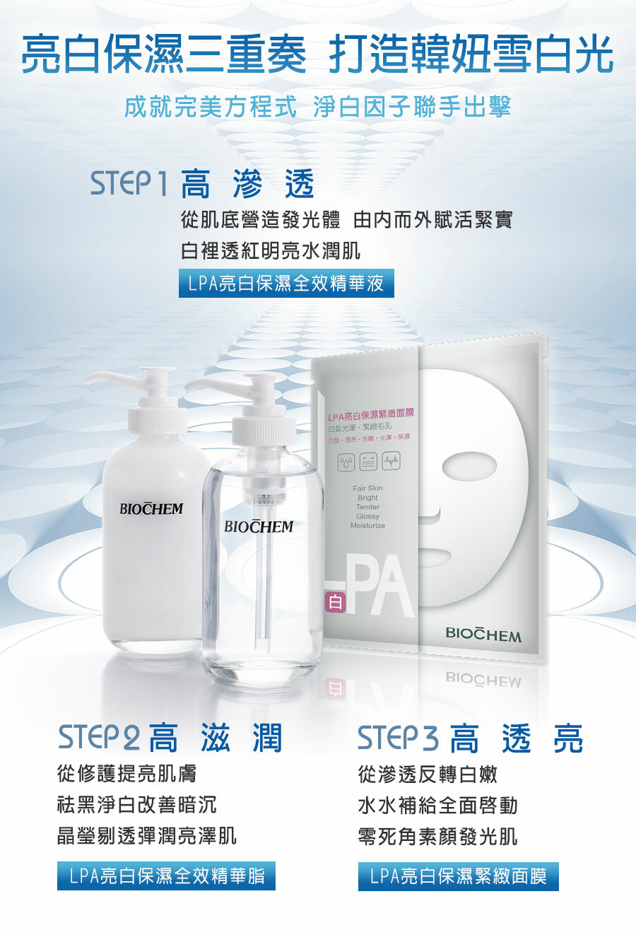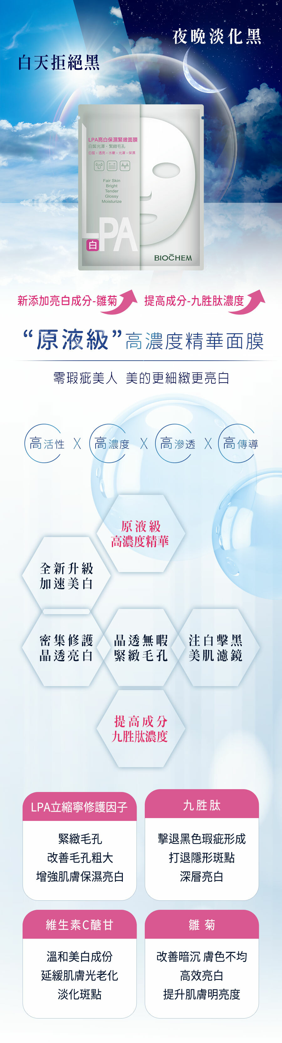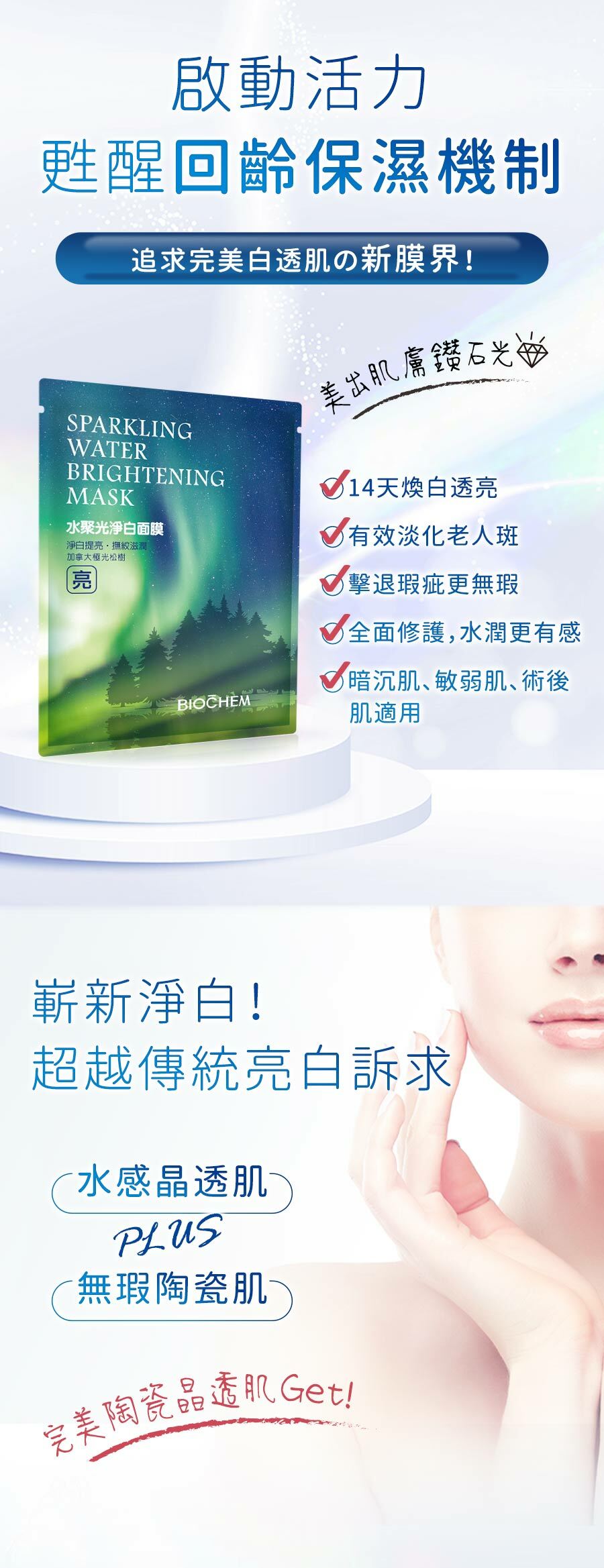 呈現亮白、保溼、細緻、緊緻、透亮、光澤、水嫩