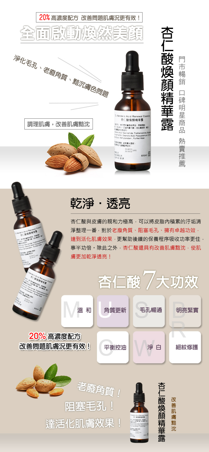 溫和、角質更新、毛孔暢通、 明亮緊實
