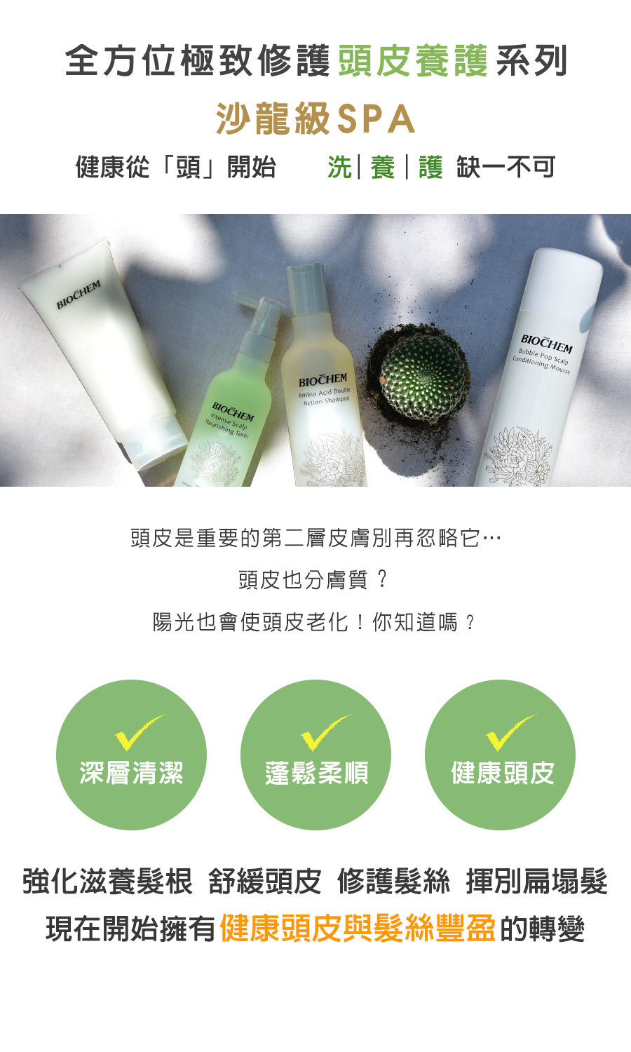 特性:淨化頭皮、控油、防禦紫外線對頭皮及髮根傷害