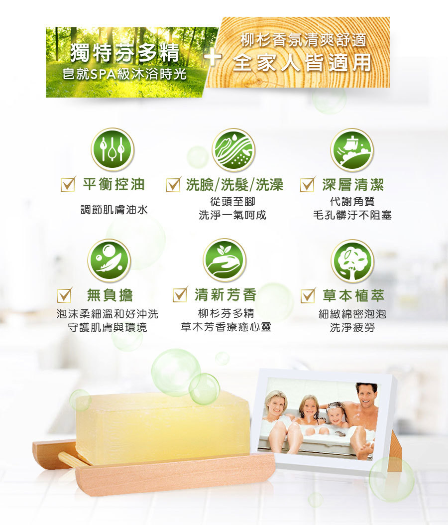 全家人都可使用 草本皂、溫和不刺激