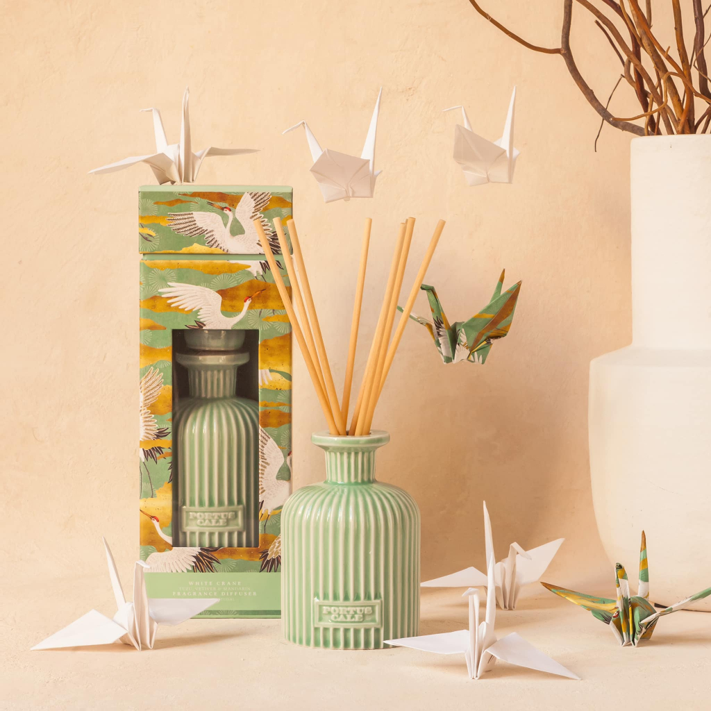 這款擴香由水綠色陶瓷製成,裝飾有優雅的羅紋效果,讓人聯想到竹林的平靜魅力。
